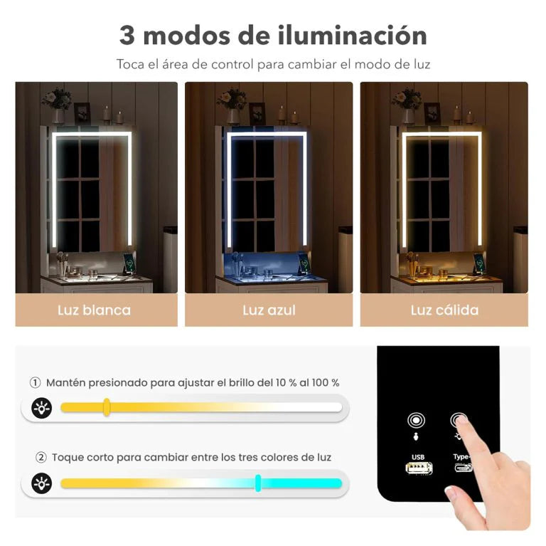 Toeletta con Specchio LED Illuminato e Tavolo da Trucco