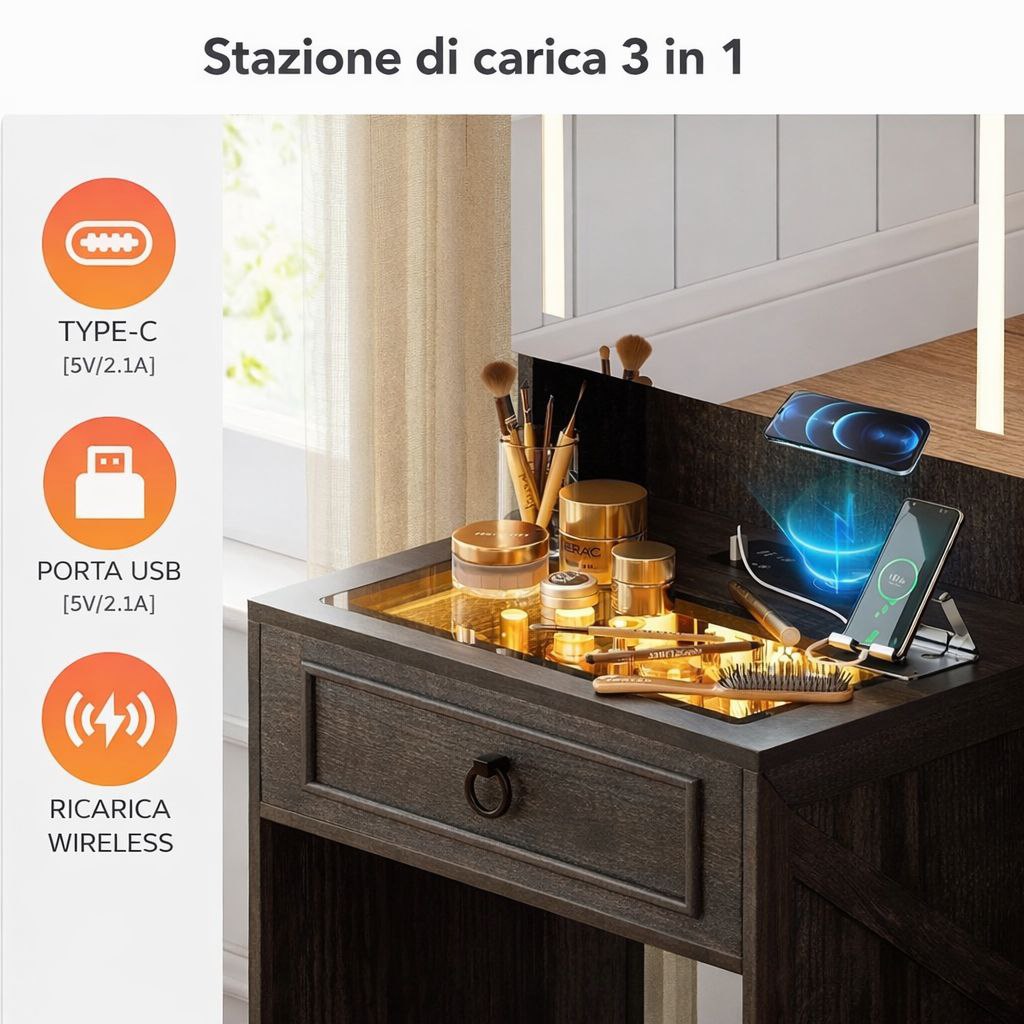 La Lumina Smart è pensata per chi desidera un angolo beauty organizzato, elegante e moderno, anche in spazi ridotti.